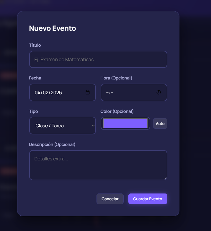 Otras funciones como modos de estudio, gym y recordatorios personales están planeadas para futuras versiones, pero todavía no forman parte de esta versión pública.